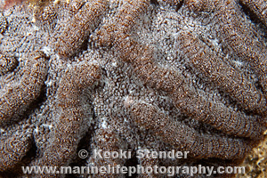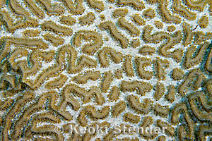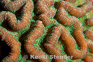 usually one row of polyps within valleys, somewhat rough, gray, pink, or