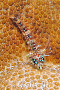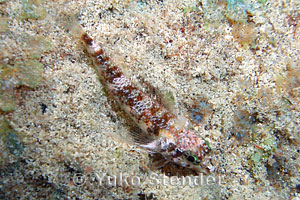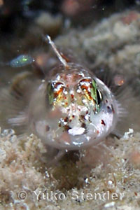 light blotches, males reddish-brown, nuptial males with a dark head. Attains 1 inch.
