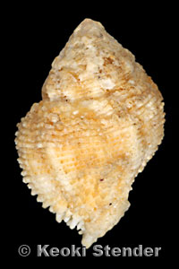 Rounded axial ribs with spiral sculpture of overlapping scales often