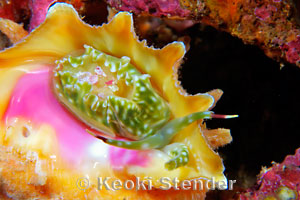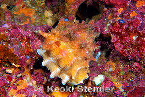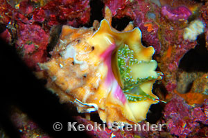 Common on or under rocks deeper than 15 feet. Most are heavily encrusted with coralline algae, and the aperture is bright pink and yellow. Attains 2.4 inches, 60mm. East Africa to Hawaii and the Tuamotus. Formerly known as Drupa rubusidaea.