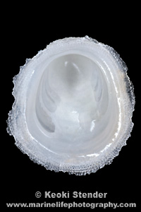 | Uncommon under rocks in shallow water. White with apex near the