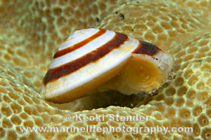 Lobe Coral upon which it feeds at night. Color variable, protoconch white,