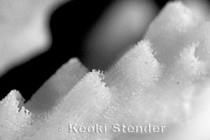 Reef. Surface flat with closely spaced spiked branches, apex of a
