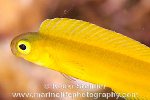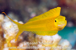 Canary Fangblenny. Attains 2.75 inches.
