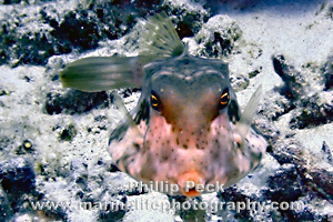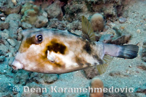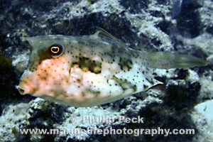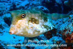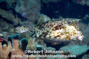 rubble reefs in Hawai'i but fairly common in Japan. Convex belly and short spines. Attains 10 inches.