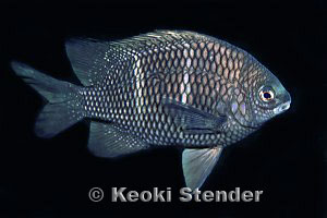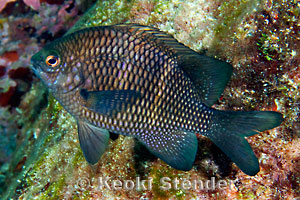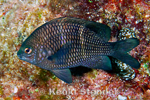 waves where they feed upon algae. Charcoal or dark brown with black-edged scales, two