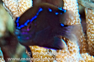 of the soft dorsal fin and pectoral base, pink-violet marks on face. Attains 5.5 inches. Red Sea to