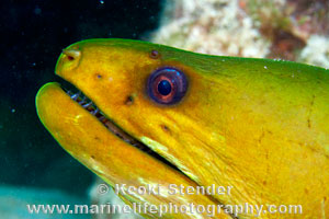 Inhabits crevices on reefs at any depth. Attains 8 feet.