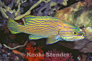 Rare along dropoffs deeper than 100 feet. Attains 13 inches. Oceanic islands from the Comoros to the Line Islands.