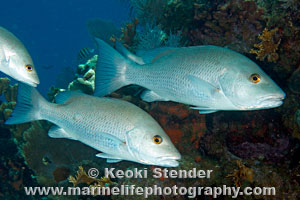 Common in variety of habitats. Juveniles with diagonal bar through the eye. An important food fish. Attains 36 inches. North Carolina to Brazil.