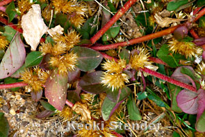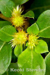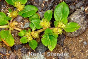 | Prostrate weed on dry lawns & disturbed lowland areas. Flowers have sharp tips that break apart upon drying, causing painful