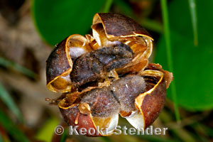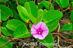 | Large trailing vine common on sandy beaches. Orbicular leaves are