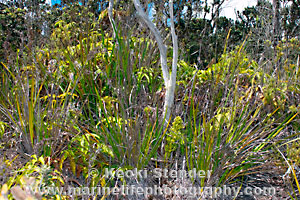 with 3 - 6 flowers, the endemic Machaerina mariscoides subsp. meyenii