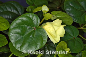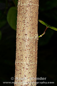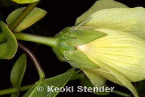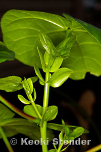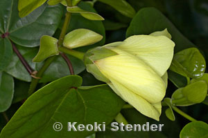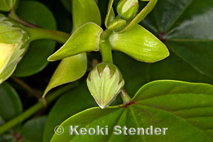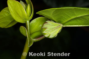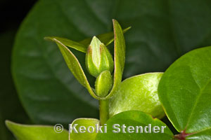 glabrous, 10cm long, new leaves light green, large oval bracts at leaf axils, petals