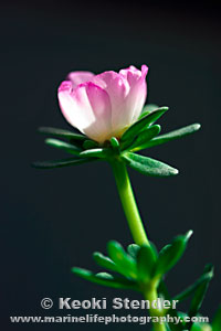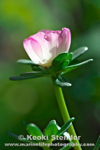 Rare in dry rocky coastal lowlands from the island of Hawaii to Nihoa, excluding Kaua'i & Ni'ihau. Flower varies from white to pink, 2cm diameter. Seed capsules are papery, not shell-like as in Portulaca sclerocarpa. Highly endangered & endemic to