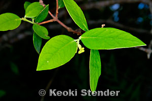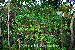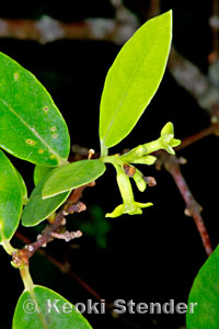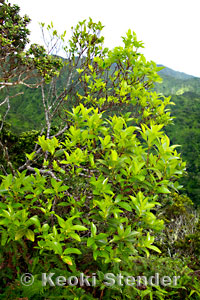 | Endemic shrub or small tree common in a variety of mesic & wet