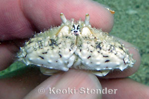 | Common in sand any depth. Feeds upon gastropods. Attains carapace width