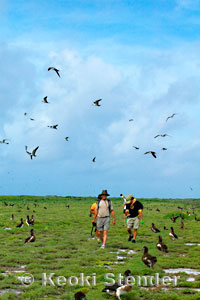Hawaiian Islands. Nests on the ground. Adults travel far