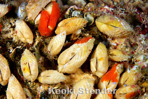 | Commonly found in clusters under dead coral. Attains 1 inch.