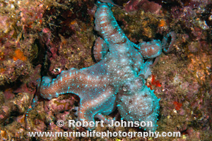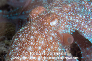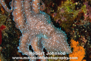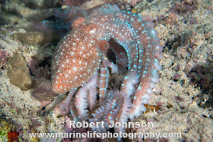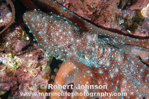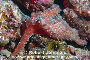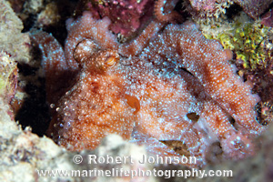 | Uncommon on shallow reefs at night. Reddish brown with white