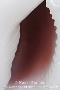 numerous elongated teeth encircling the wine-colored aperture. Attains