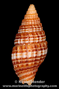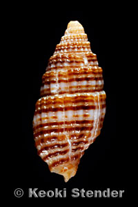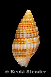 with four orange or brown spirals per whorl. Attains 1.1 inch,