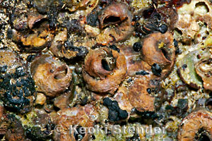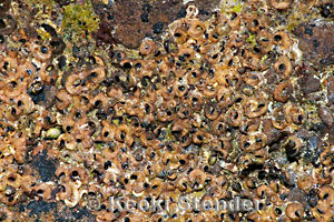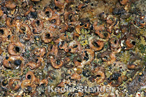| Thousands of shells grow upon each other, forming thick mats on wave benches