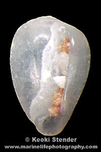 and outer lip folded inward with small denticles. Attains 0.1 inch, 2mm.