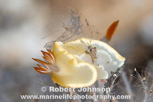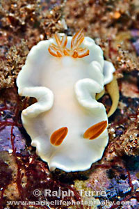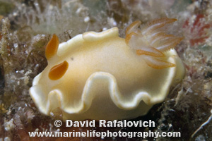 Cream or bluish-white, often with a yellow margin, rhinophores & gills