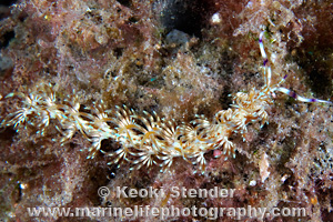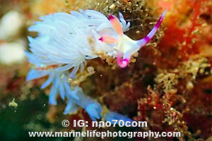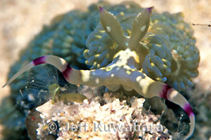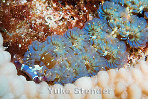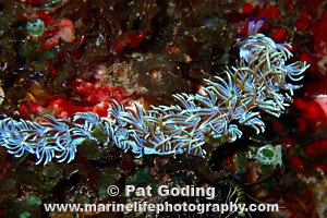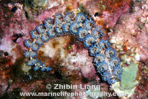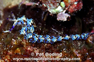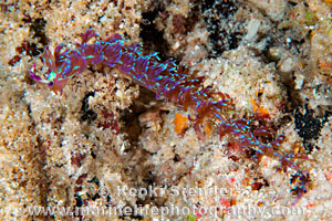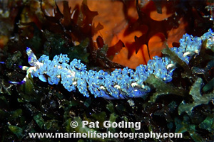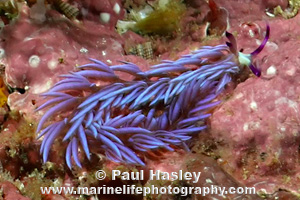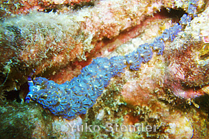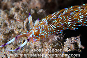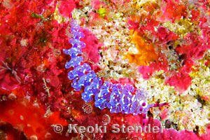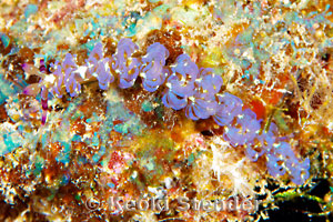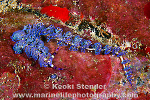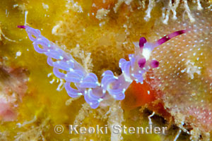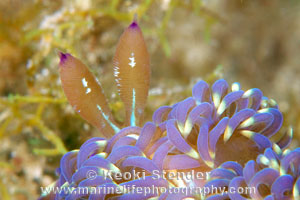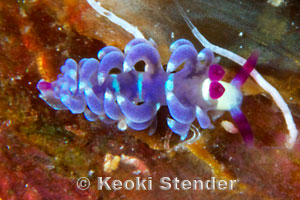 Rhinophores and tentacles with purple rings, body variable according to diet, in Hawaii typically blue to lilac,